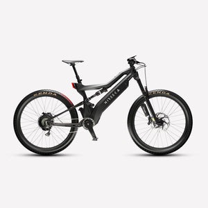 Nireeka Revenant is a full-suspension, carbon fiber, and powerful ebike with an optional 1000w motor and more than 50 miles (80 km) range with a single charge on the upgraded battery.