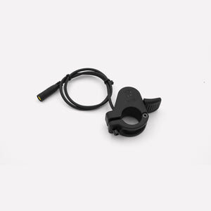 Using the throttle, you can ride the bike without pedaling just like a motorcycle. It's a thumb throttle meaning that you need to push the lever to engage it.